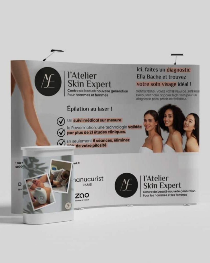 Le roll-up est un outil incontournable sur les salons. Facile à transporter et rapide à installer, il permet d’ajouter de la visibilité à votre stand.